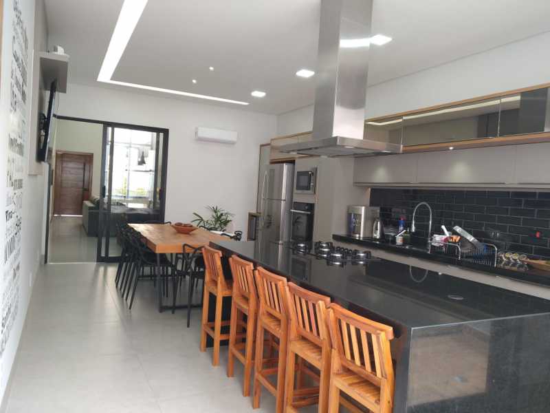 Casa de alto padrão, com 3 suítes sendo 1 com closet todos com armários planejados. Sala com 2 ambientes planejados, cozinha planejada, área gourmet com churrasqueira e móveis planejados, banheiro no lazer, lavanderia com móveis planejados. Aquecimento solar e uma área com piscina sendo toda iluminada. Casa toda equipada com ar-condicionado.